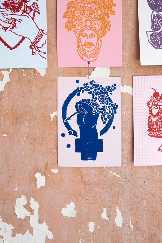 "Figs and blackberries", lino print