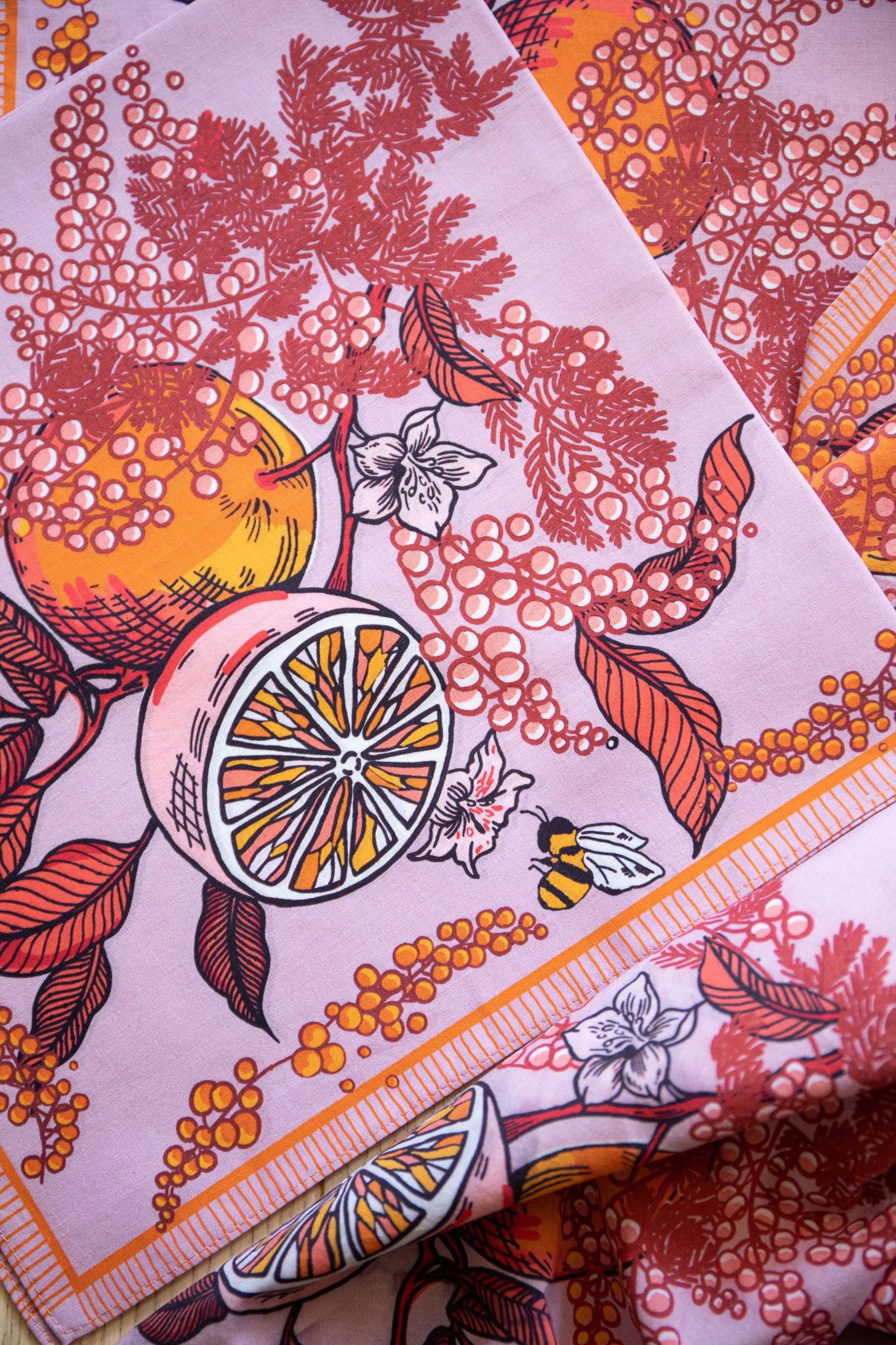 Made from soft, lightweight 100% cotton, this 60x60 cm bandana features a vibrant design of oranges and mimosa, perfect for adding a splash of color and charm to your outfit or accessories.